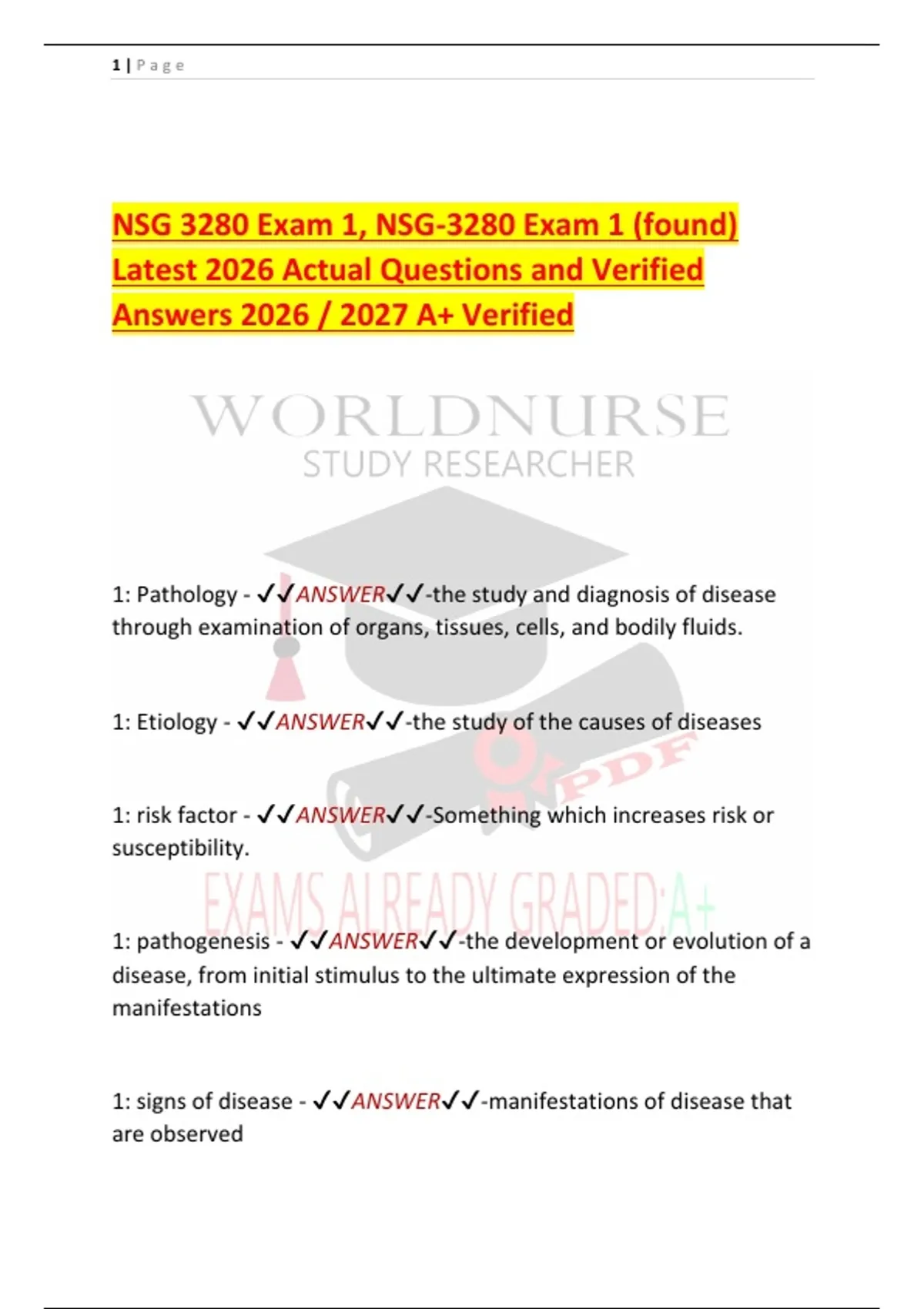NSG 3280 Exam 1, NSG-3280 Exam 1 (found) Latest 2026 Actual Questions and Verified Answers 2026 / 2027 A+ Verified