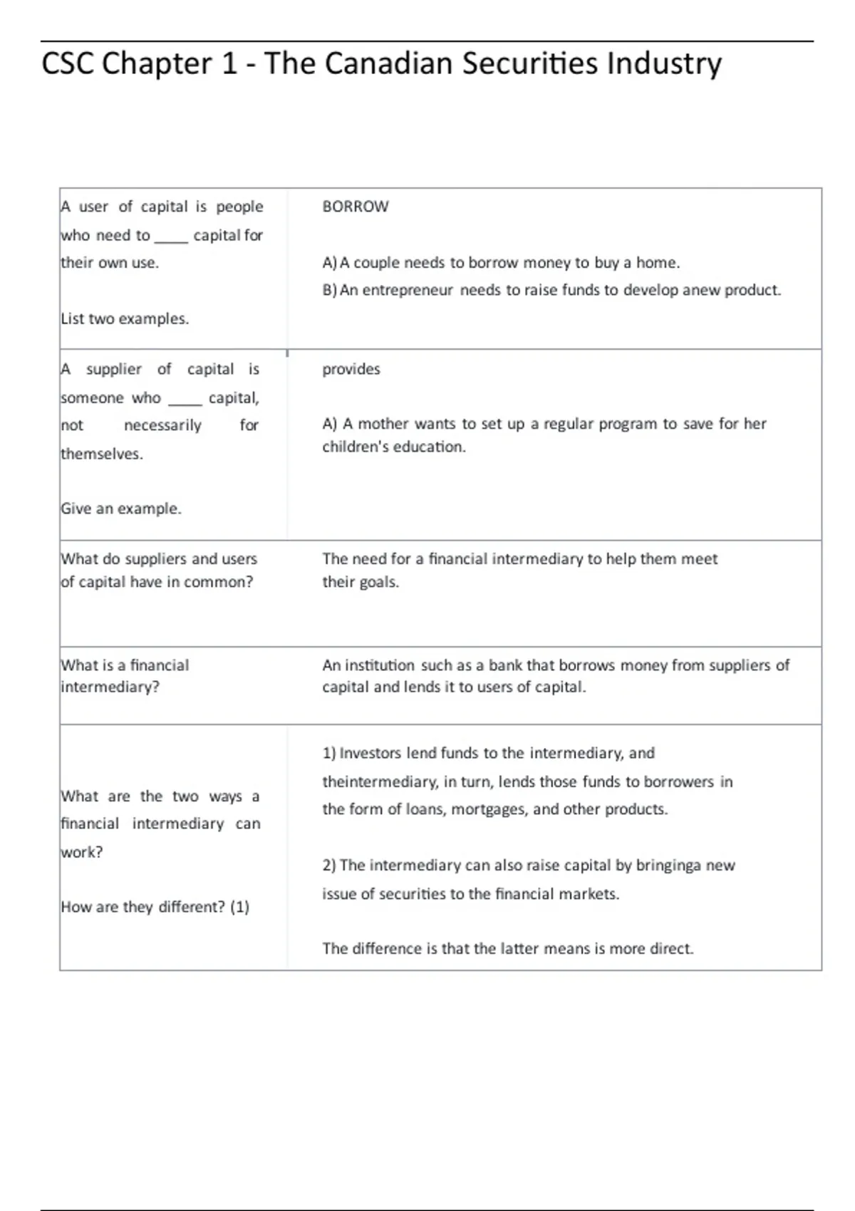 intermediary? capital and lends it to users of capital.