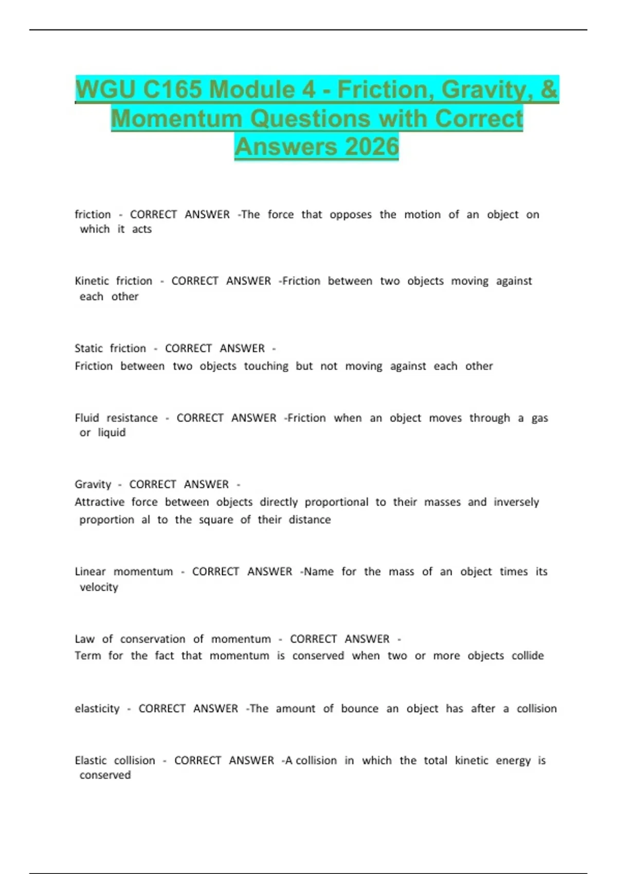 WGU C165 Module 4 - Friction, Gravity, &