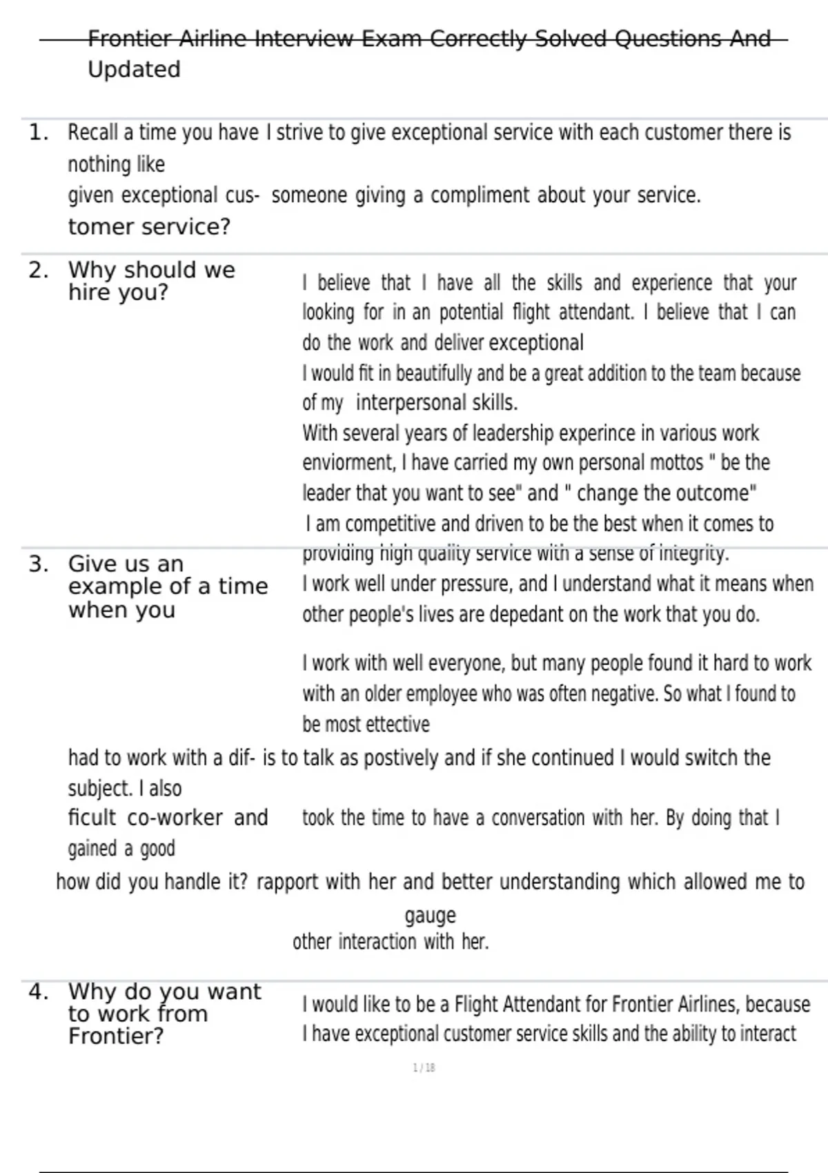, Frontier Airline Interview Exam Correctly Solved Questions And