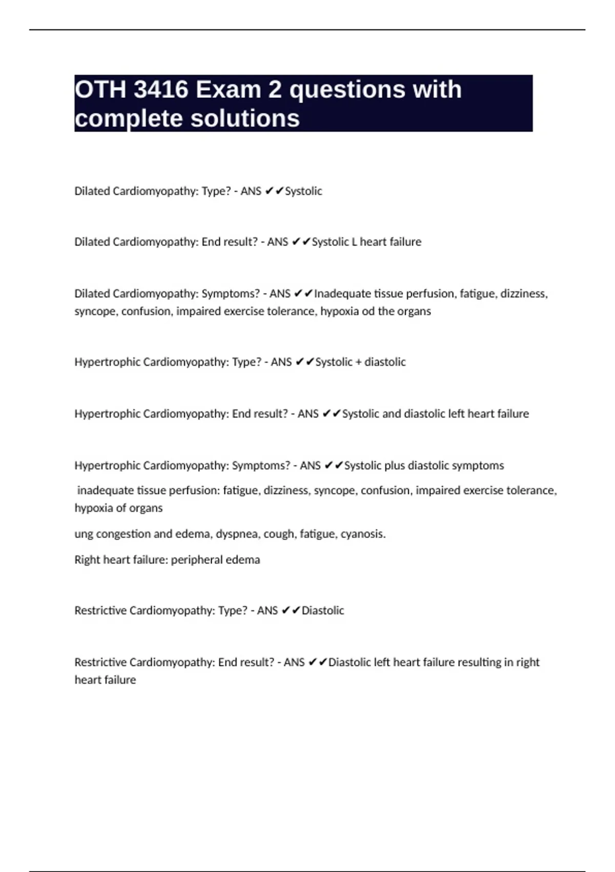 Dilated Cardiomyopathy: Type? - ANS ✔✔Systolic