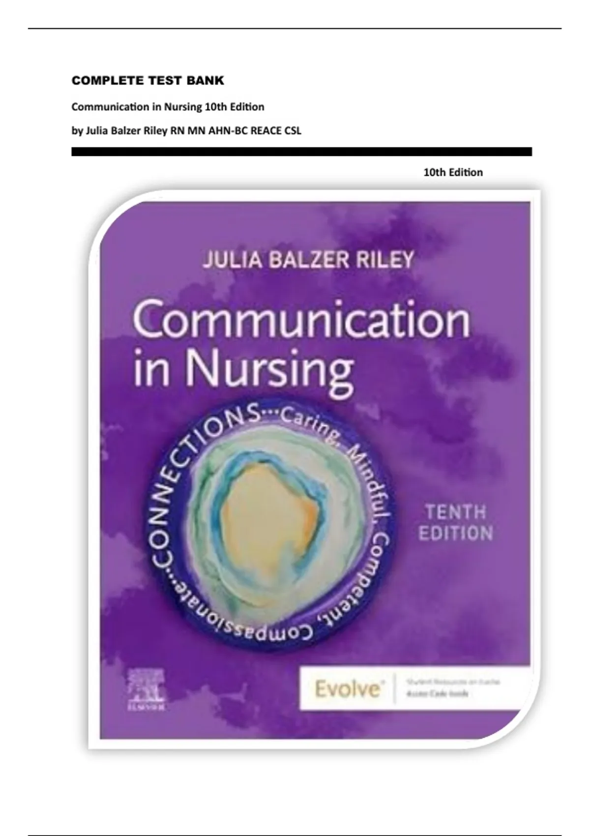COMPLETE TEST BANK Communication in Nursing 10th Edition by Julia Balzer Riley RN MN AHN-BC REACE CSL