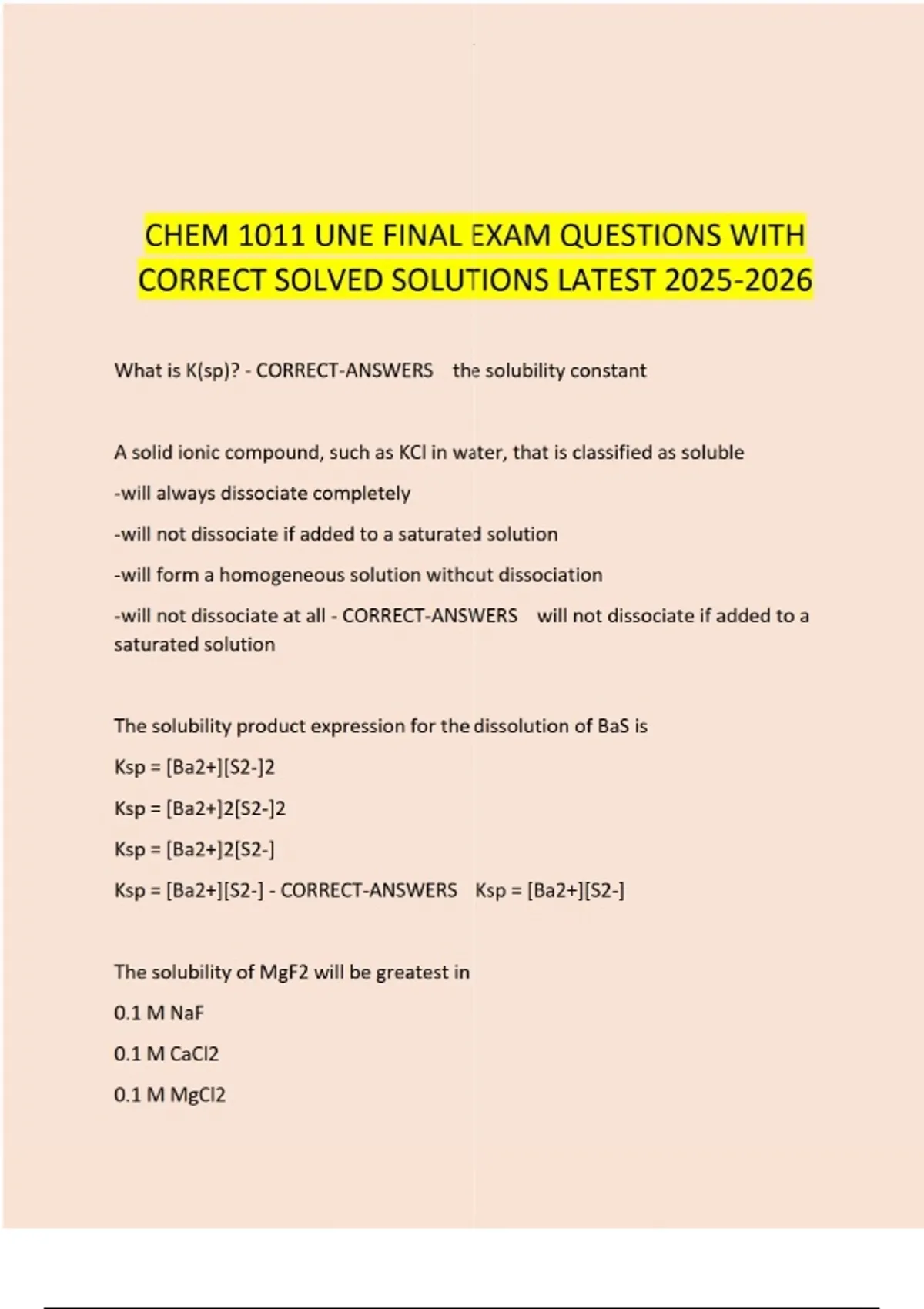 CHEM 1011 WEEK 4 EXAM QUESTIONS WITH CORRECT ANSWERS