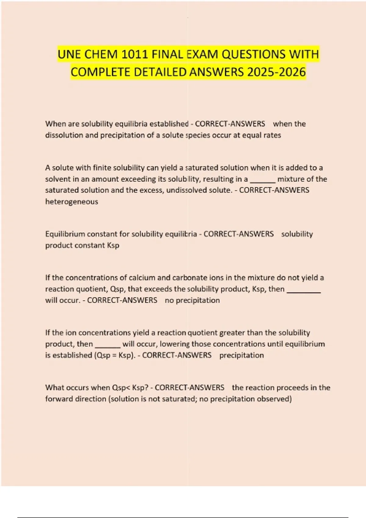 UNE CHEM 1011 FINAL EXAM QUESTIONS WITH COMPLETE DETAILED ANSWERS