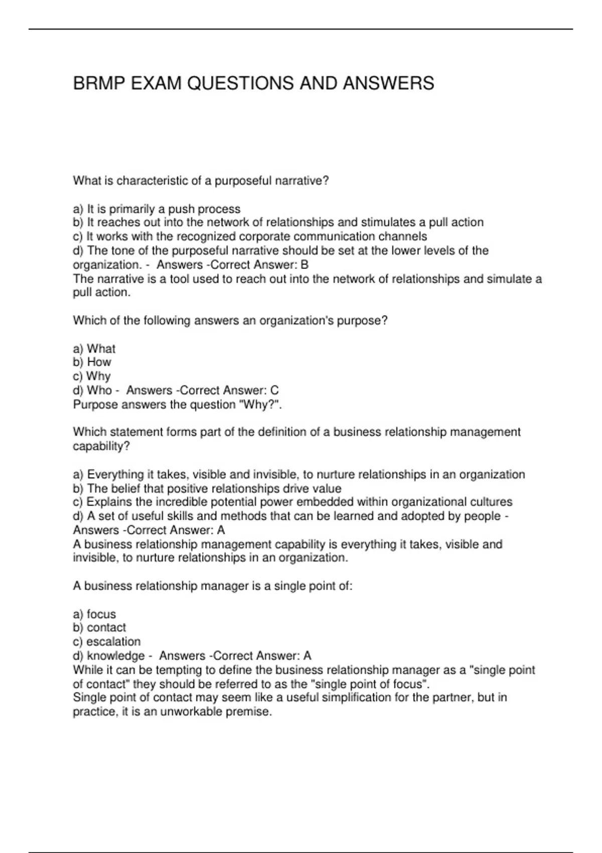 d) The BRM explores organizational value for partners - Answers -Correct Answer: B