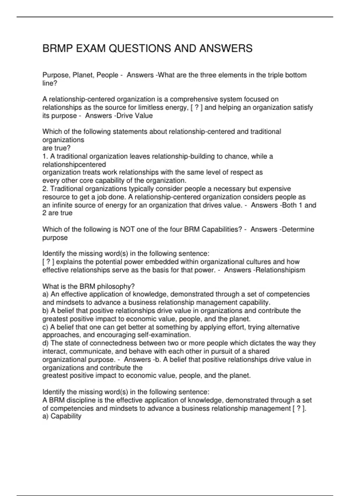 BRMP EXAM QUESTIONS AND ANSWERS