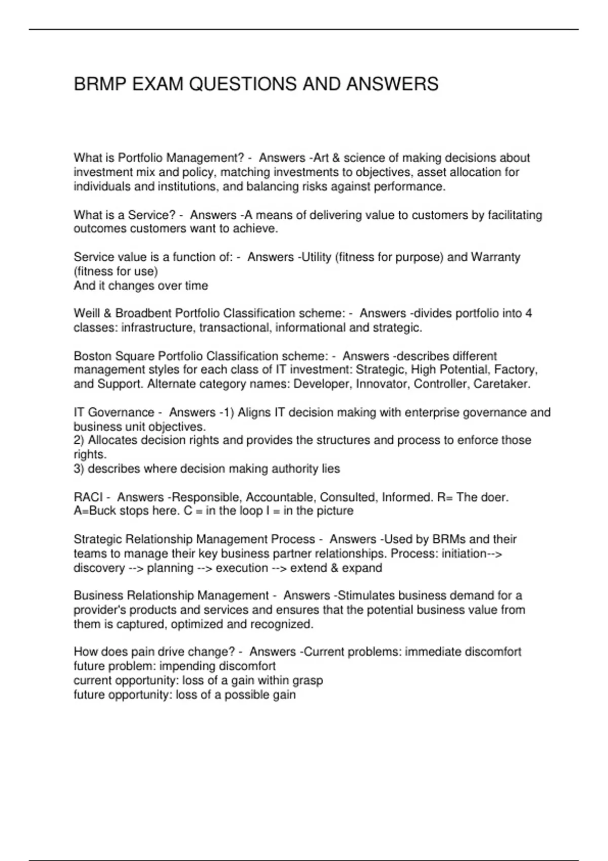 Strategic Relationship Management Process - Answers -Used by BRMs and their