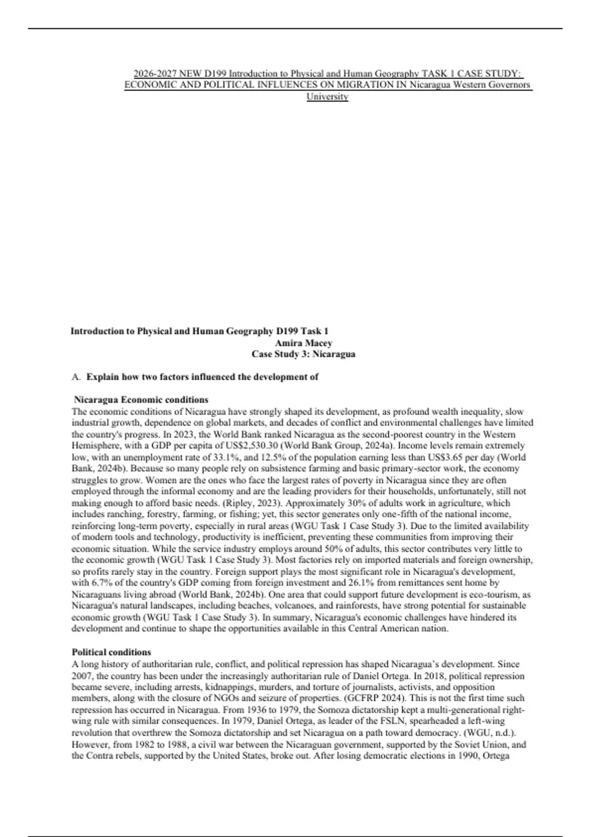 economic growth (WGU Task 1 Case Study 3). In summary, Nicaragua's economic challenges have hindered its