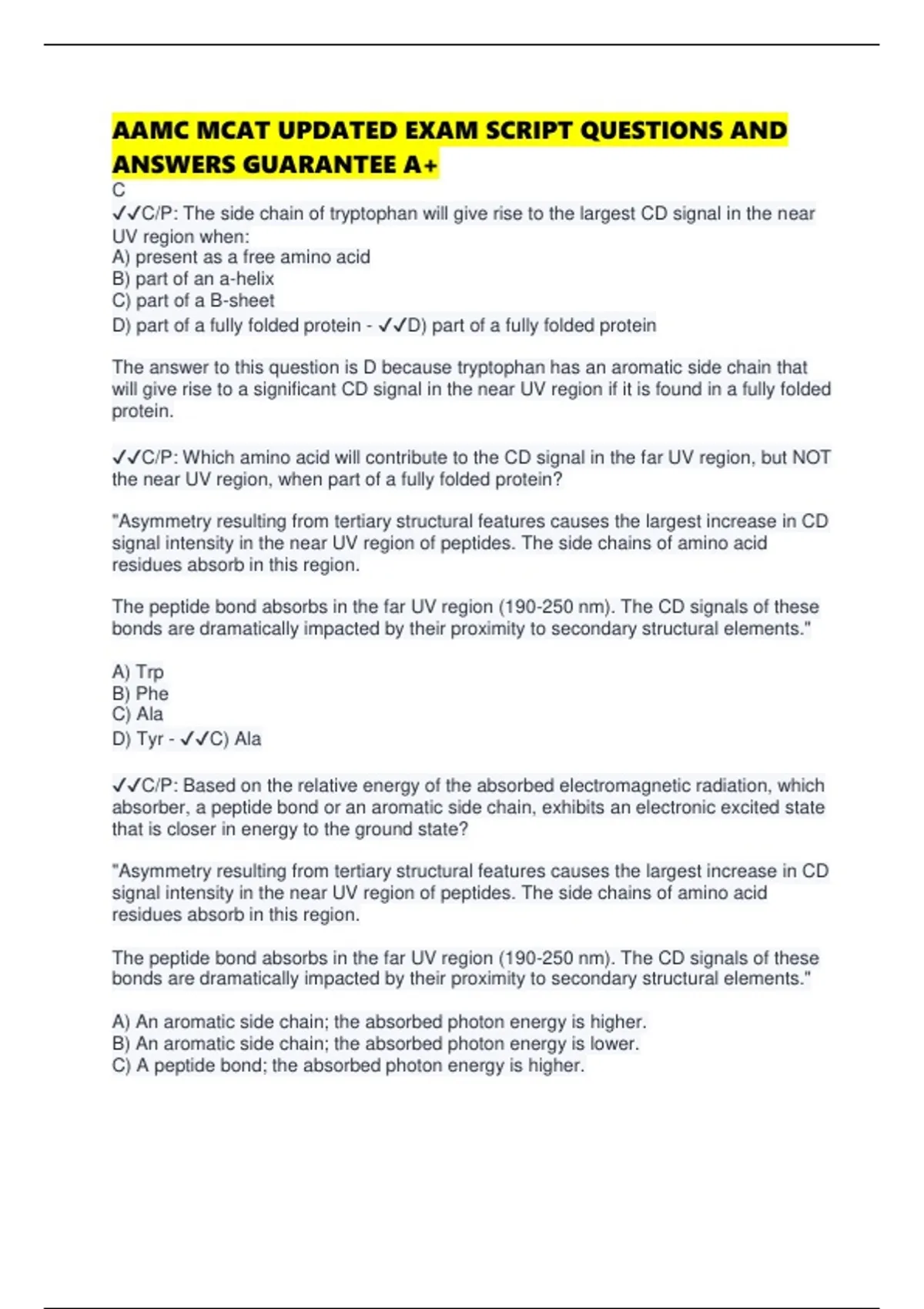 AAMC MCAT UPDATED EXAM SCRIPT QUESTIONS AND ANSWERS GUARANTEE A+