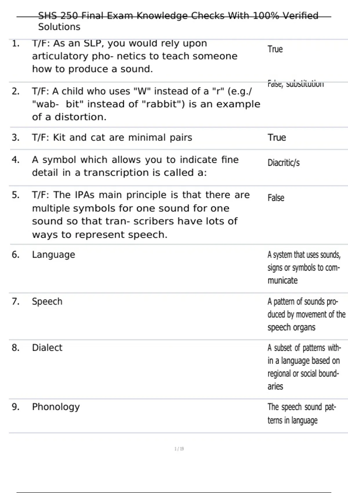 1. T/F: As an SLP, you would rely upon