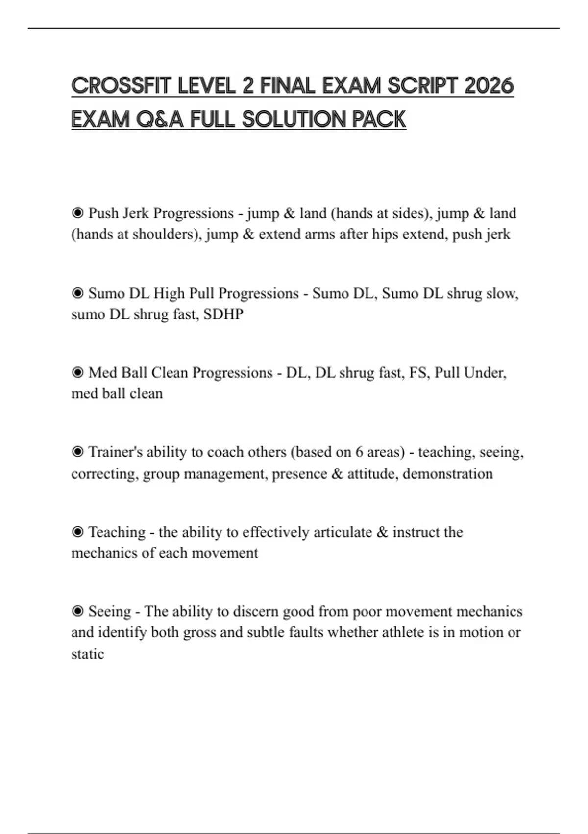 CROSSFIT LEVEL 2 FINAL EXAM SCRIPT 2026 EXAM Q&A FULL SOLUTION PACK