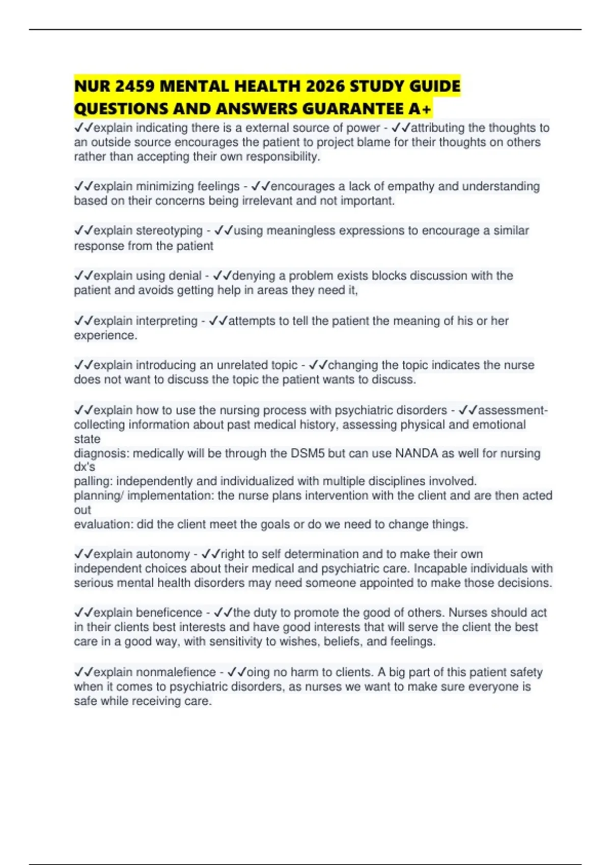✔✔explain how to use the nursing process with psychiatric disorders - ✔✔assessment-