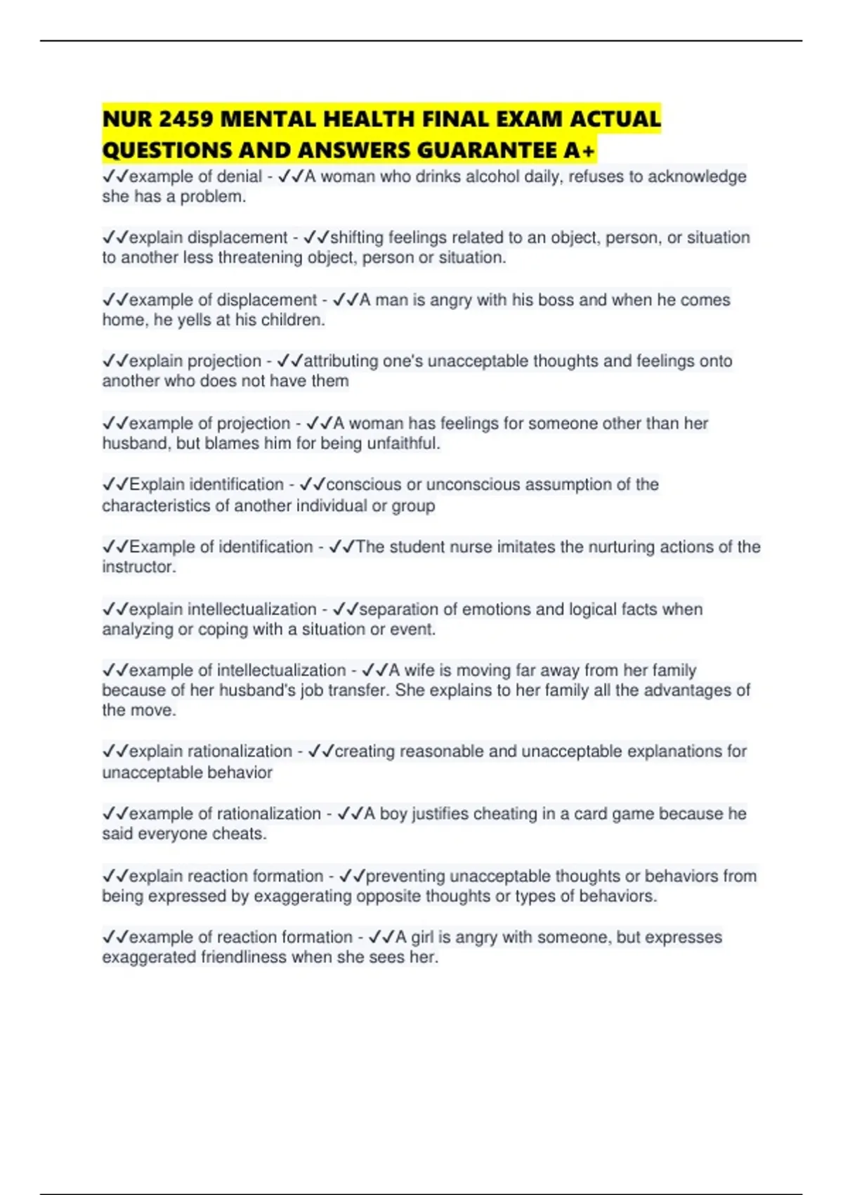 NUR 2459 MENTAL HEALTH FINAL EXAM ACTUAL QUESTIONS AND ANSWERS GUARANTEE A+