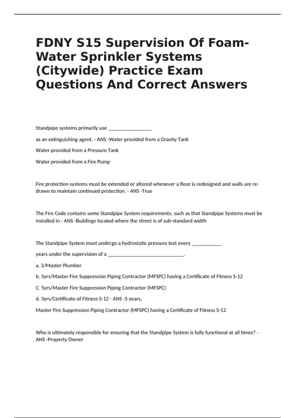 Of the following certificates of fitness, which one is a citywide certificate? - ANS -Sprinkler Systems S-12