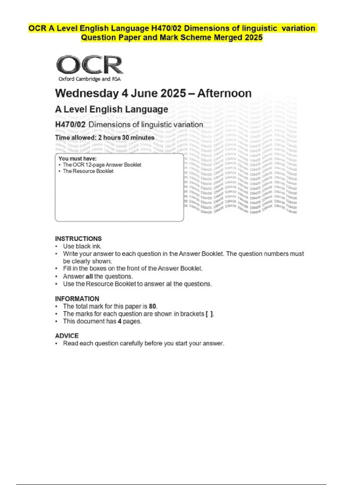 OCR A Level English Language H470/02 Dimensions of linguistic variation Question Paper and Mark Scheme Merged 2025