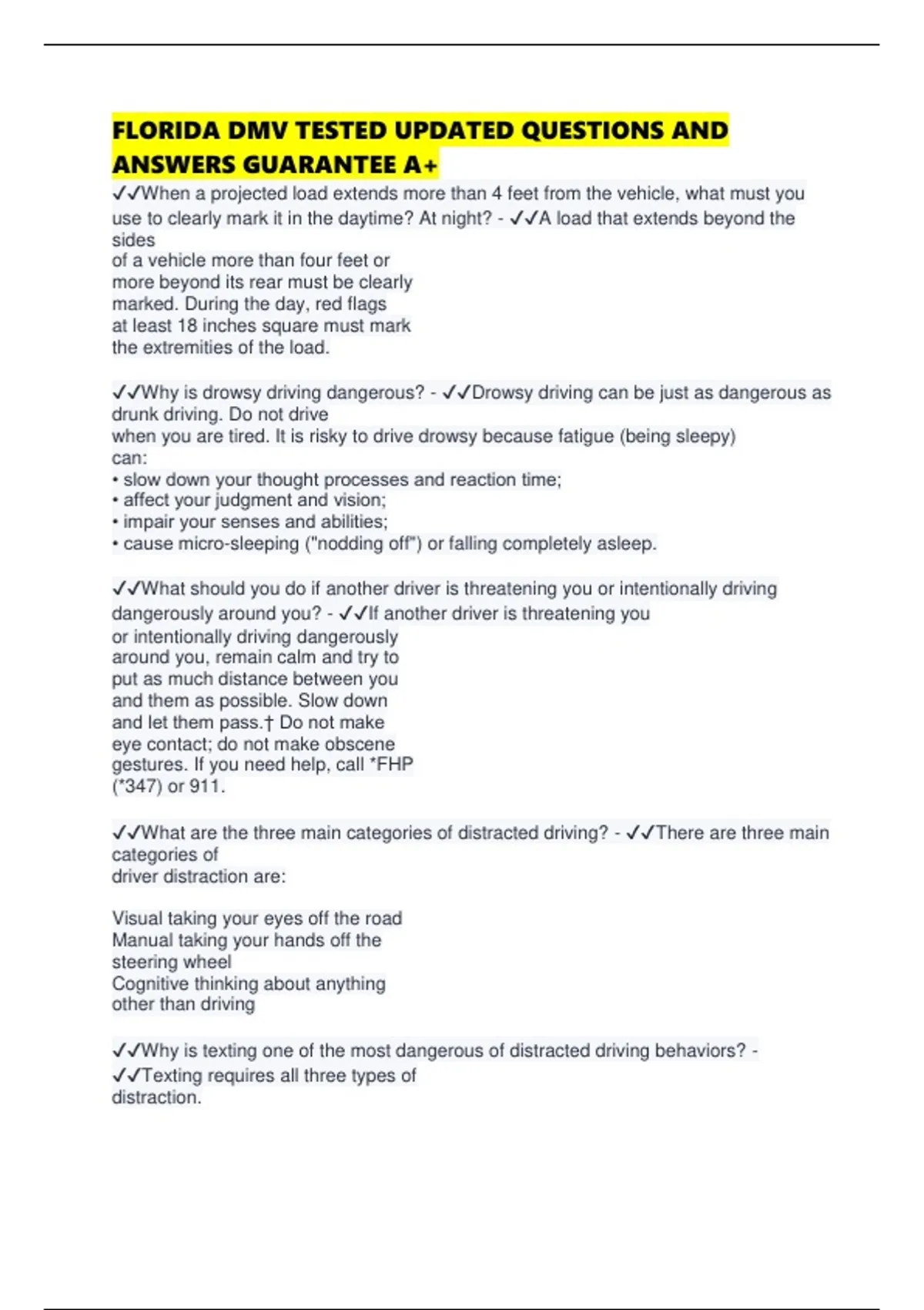 ✔✔What are the three main categories of distracted driving? - ✔✔There are three main