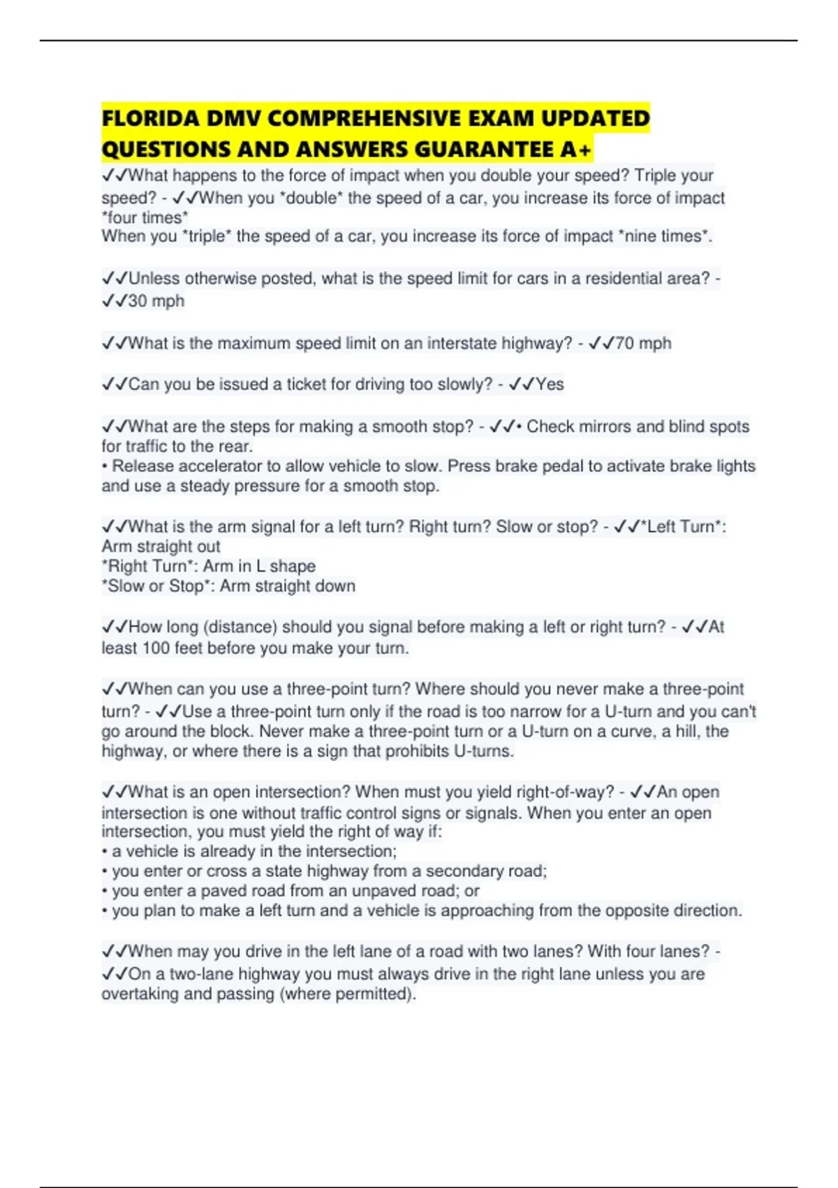 - ✔✔Before you move to change lanes on a highway or to pass on any road, turn your
