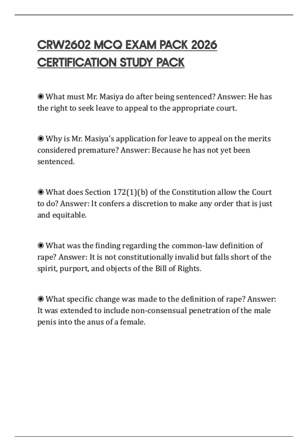 ◉ What conviction was Mr. Masiya's original conviction of rape