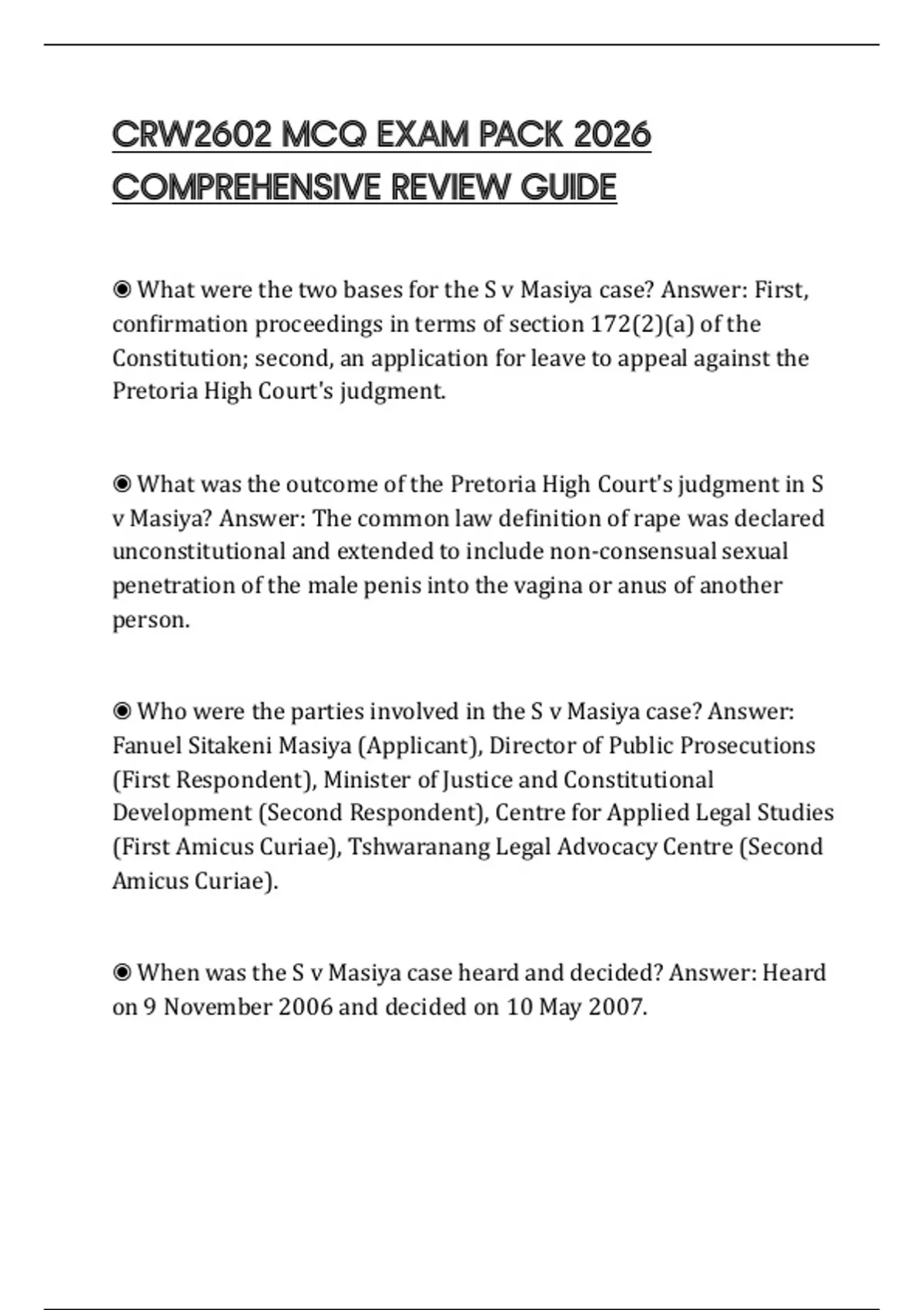 CRW2602 MCQ EXAM PACK 2026 COMPREHENSIVE REVIEW GUIDE