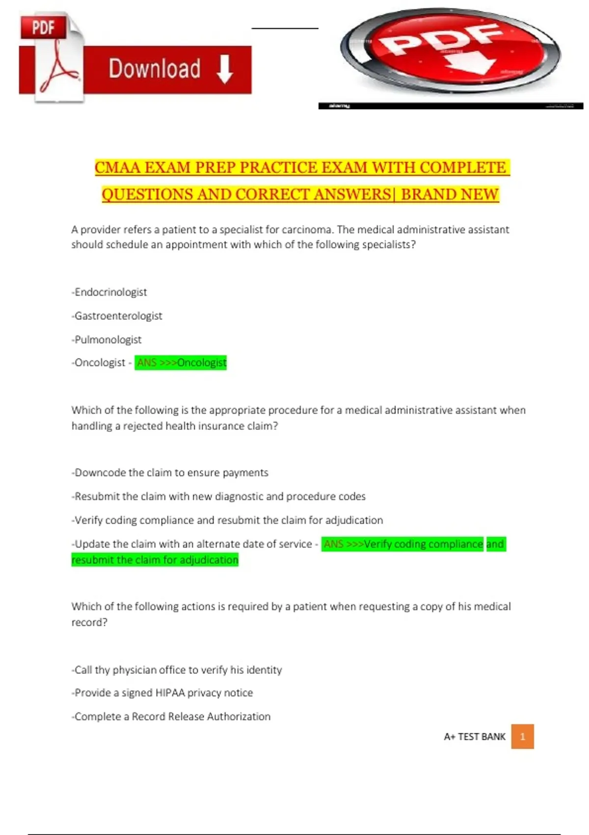 CMAA EXAM PREP PRACTICE EXAM WITH COMPLETE