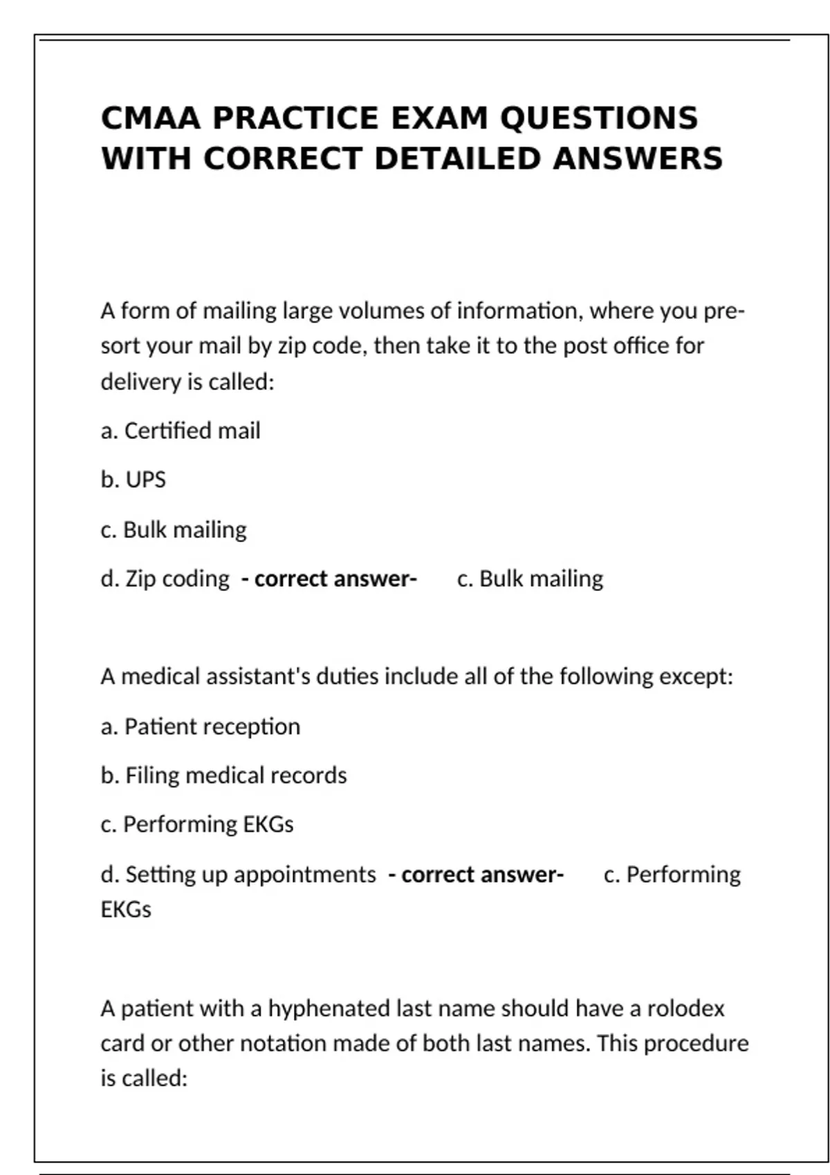CMAA Practice Exam Questions & Detailed Answers | Medical Assistant Admin Guide