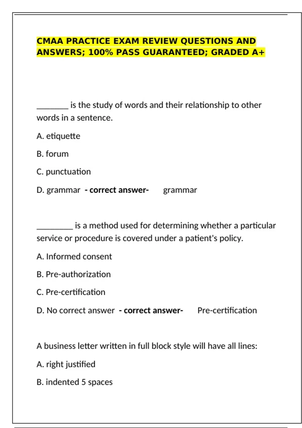 CMAA PRACTICE EXAM REVIEW QUESTIONS AND