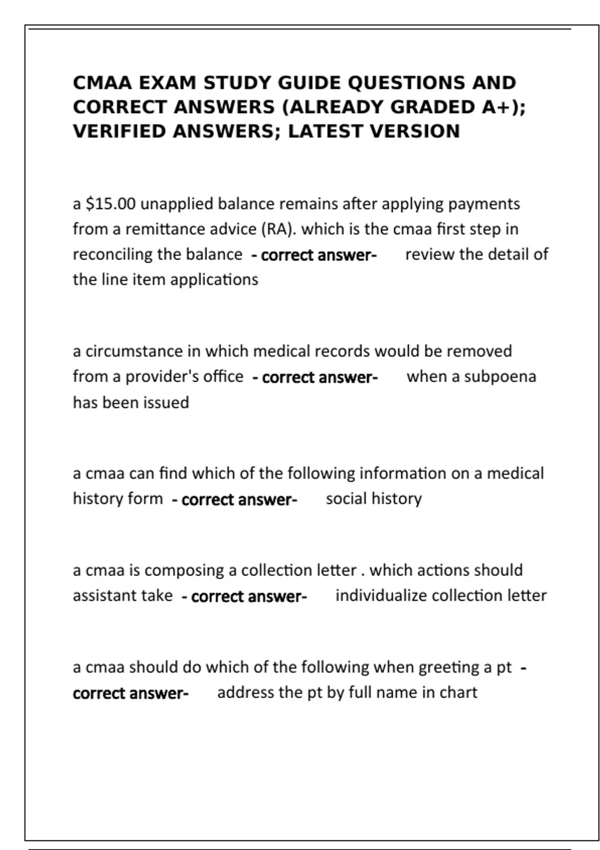 CMAA Exam Study Guide: A+ Graded Questions & Verified Answers (Latest Version)
