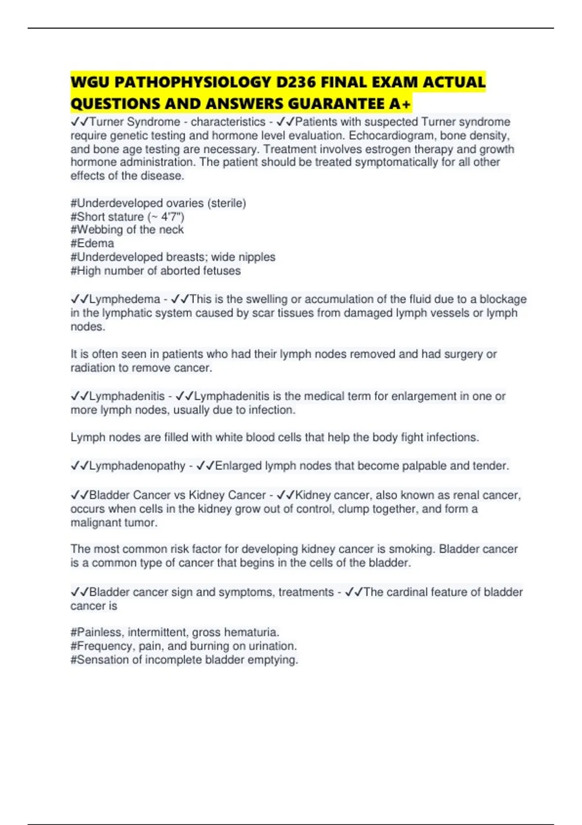 WGU PATHOPHYSIOLOGY D236 FINAL EXAM ACTUAL QUESTIONS AND ANSWERS GUARANTEE A+