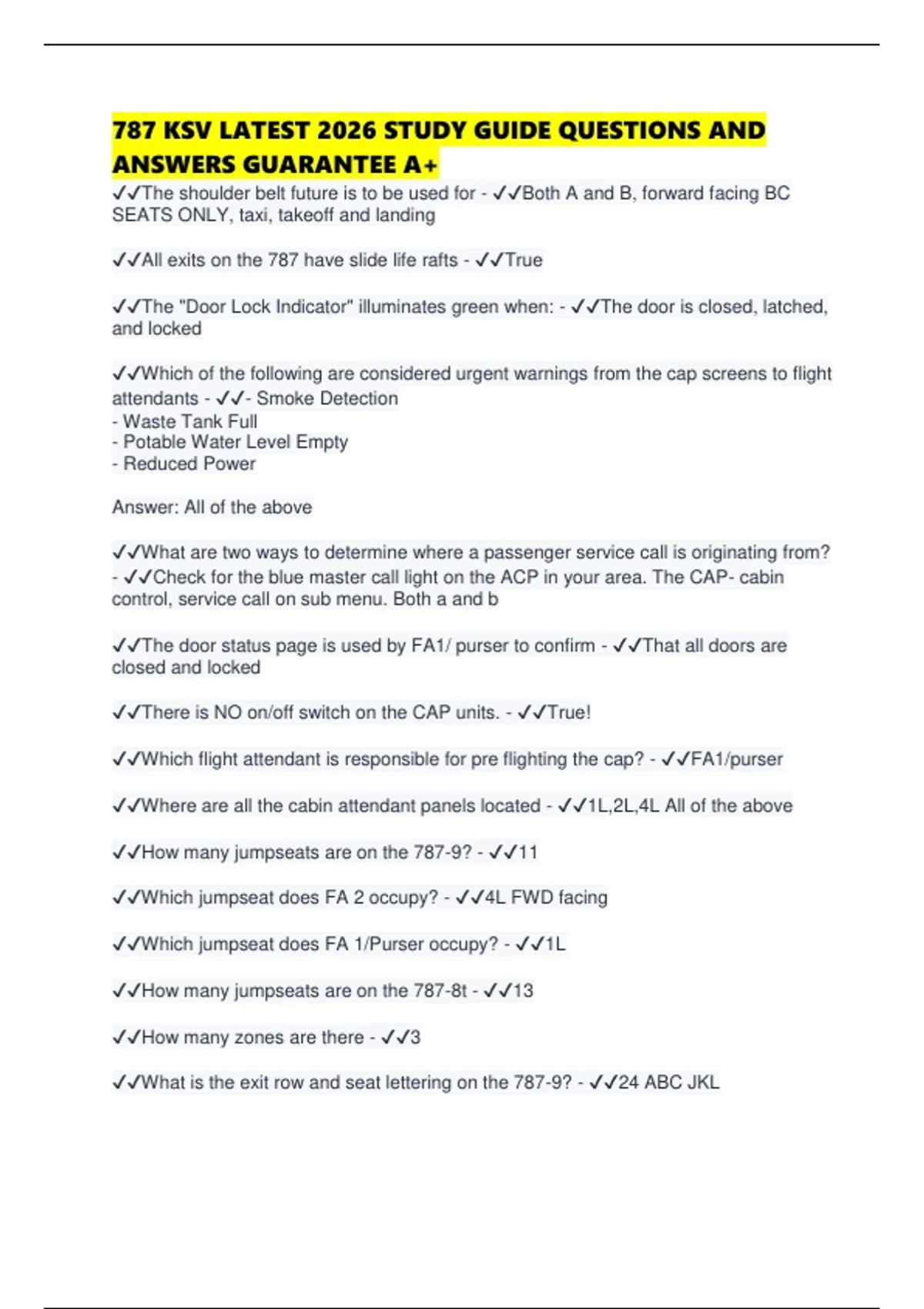 787 KSV LATEST 2026 STUDY GUIDE QUESTIONS AND ANSWERS GUARANTEE A+