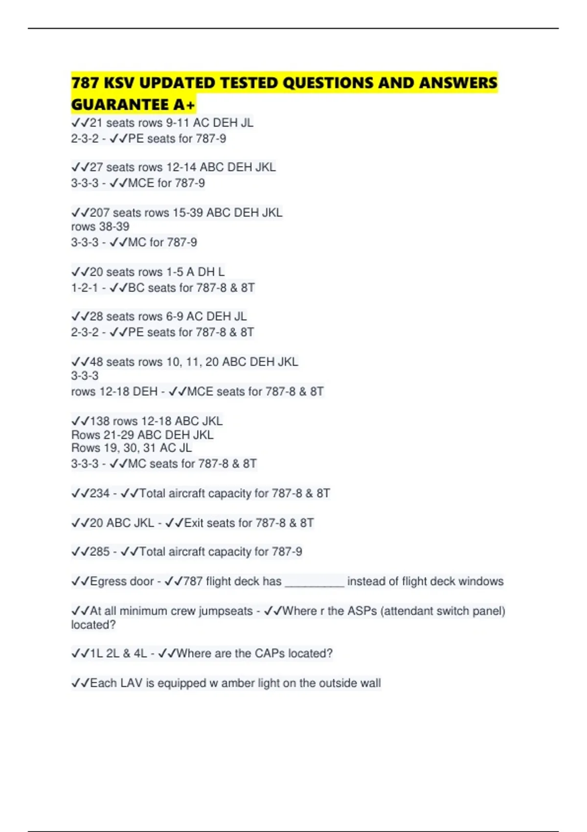 787 KSV UPDATED TESTED QUESTIONS AND ANSWERS GUARANTEE A+