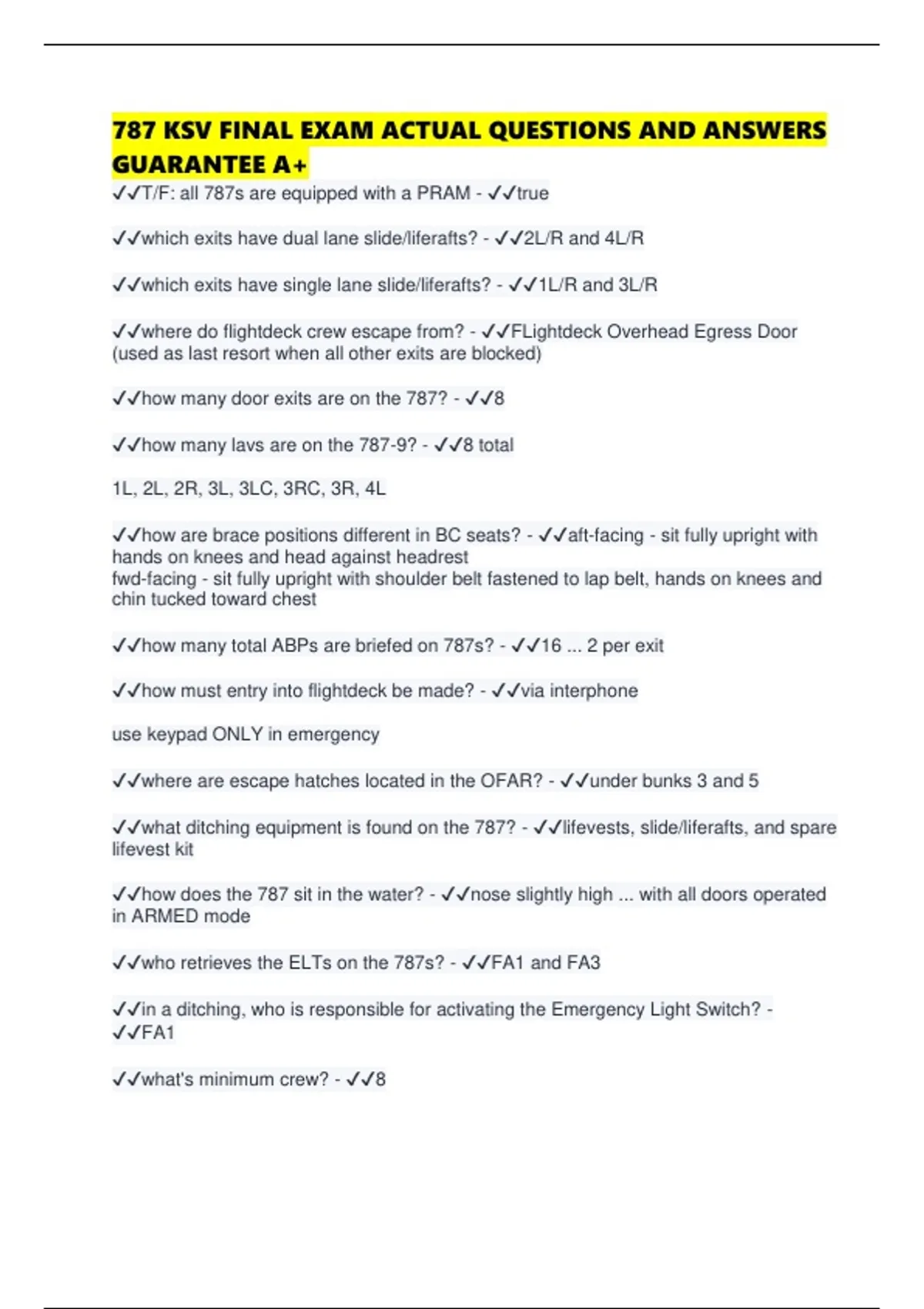 787 KSV FINAL EXAM ACTUAL QUESTIONS AND ANSWERS GUARANTEE A+