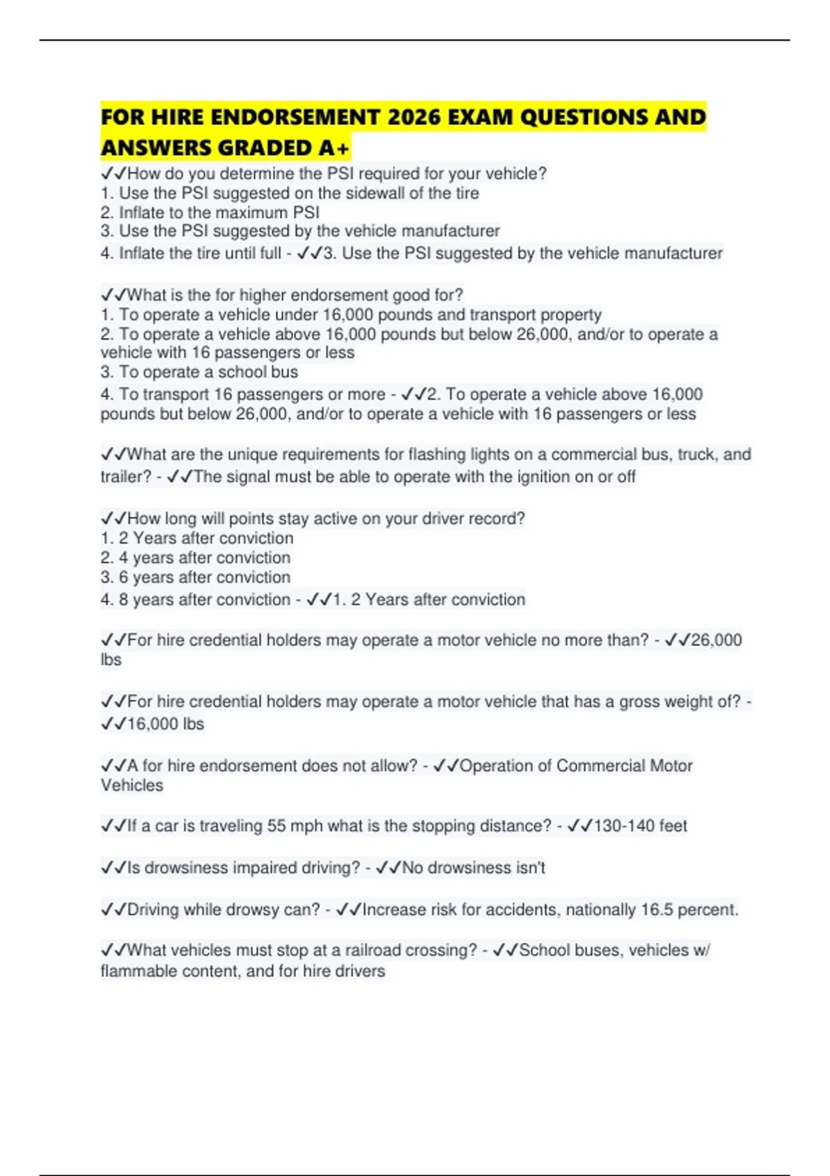✔✔A for hire endorsement does not allow? - ✔✔Operation of Commercial Motor