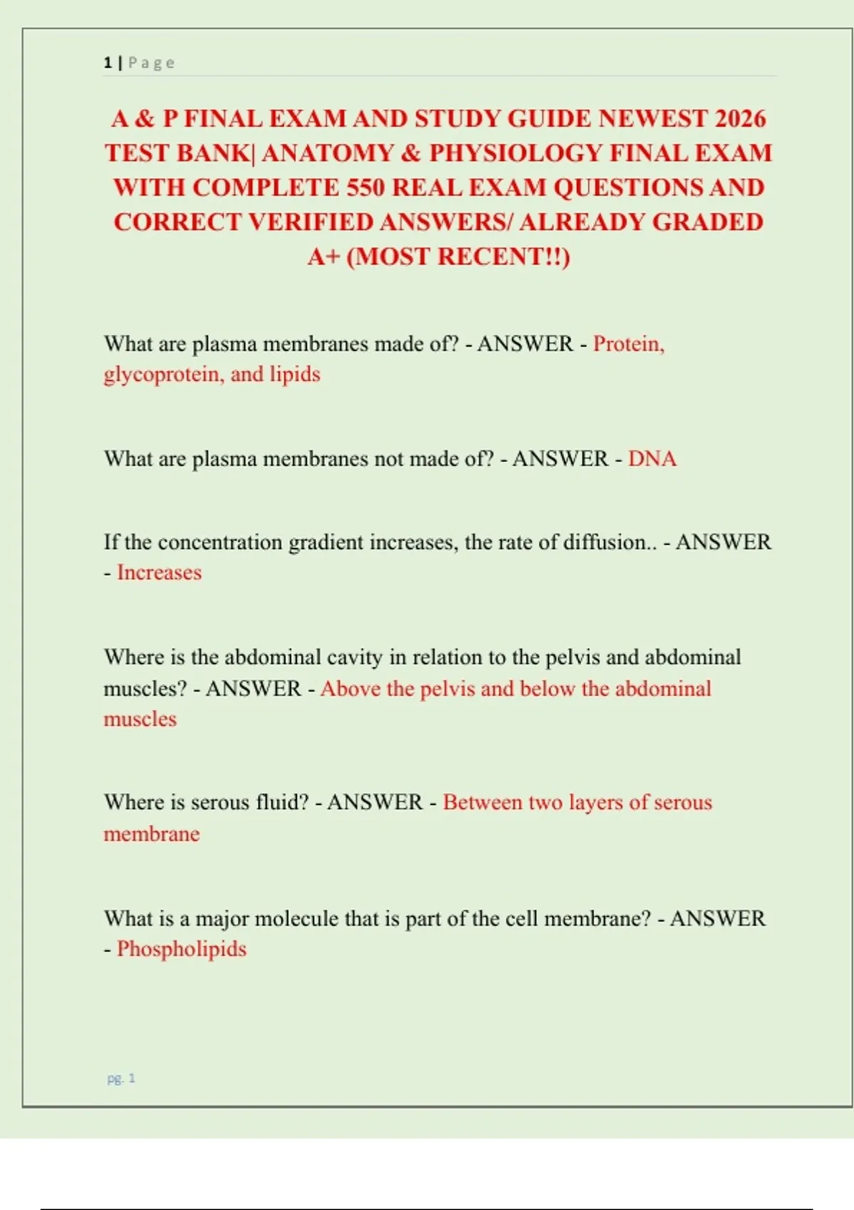 TEST BANK| ANATOMY & PHYSIOLOGY FINAL EXAM