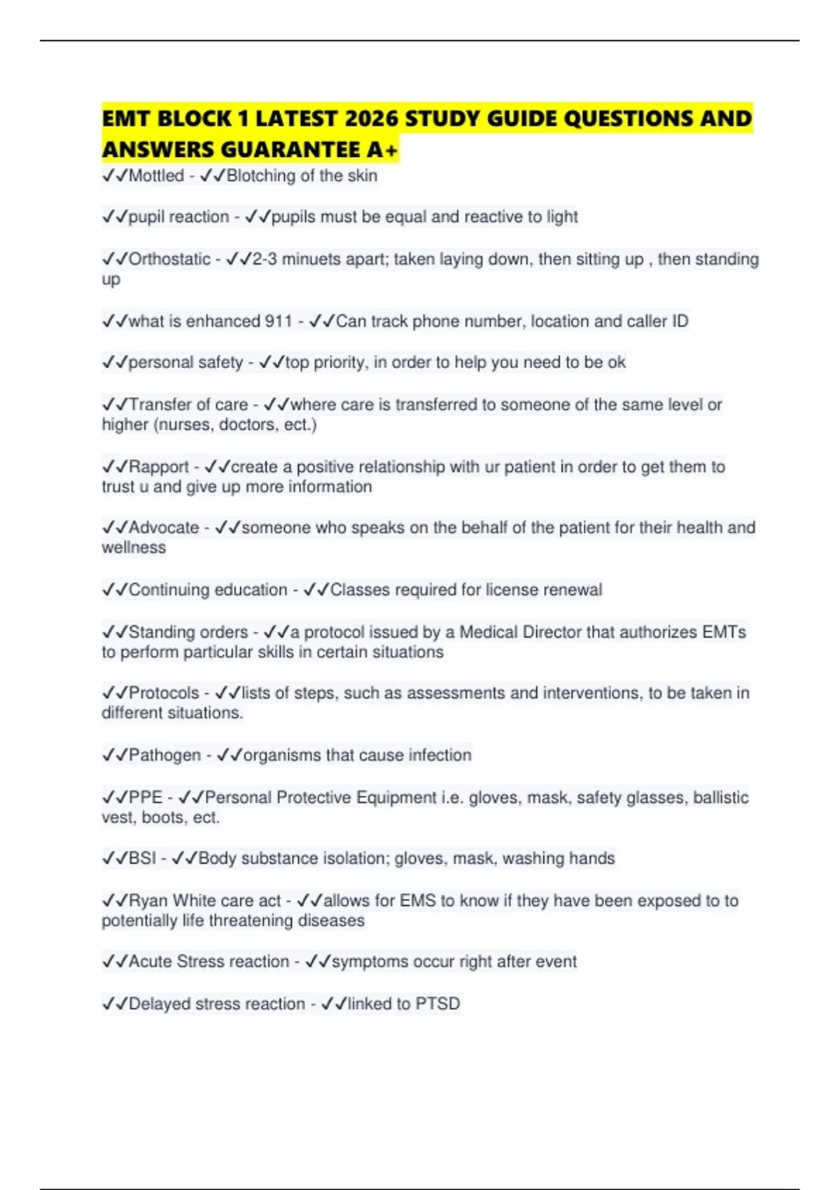 EMT BLOCK 1 LATEST 2026 STUDY GUIDE QUESTIONS AND ANSWERS GUARANTEE A.pdf