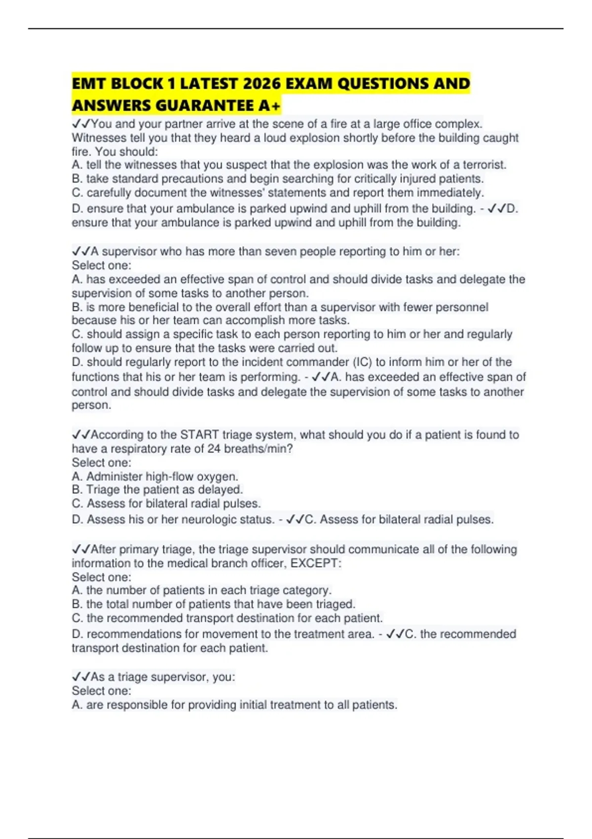 EMT BLOCK 1 LATEST 2026 EXAM QUESTIONS AND ANSWERS GUARANTEE A.pdf