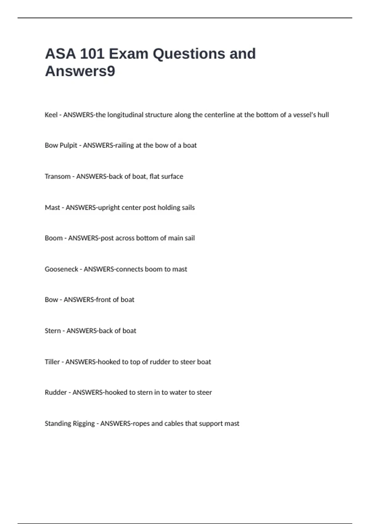 Standing Rigging - ANSWERS-ropes and cables that support mast