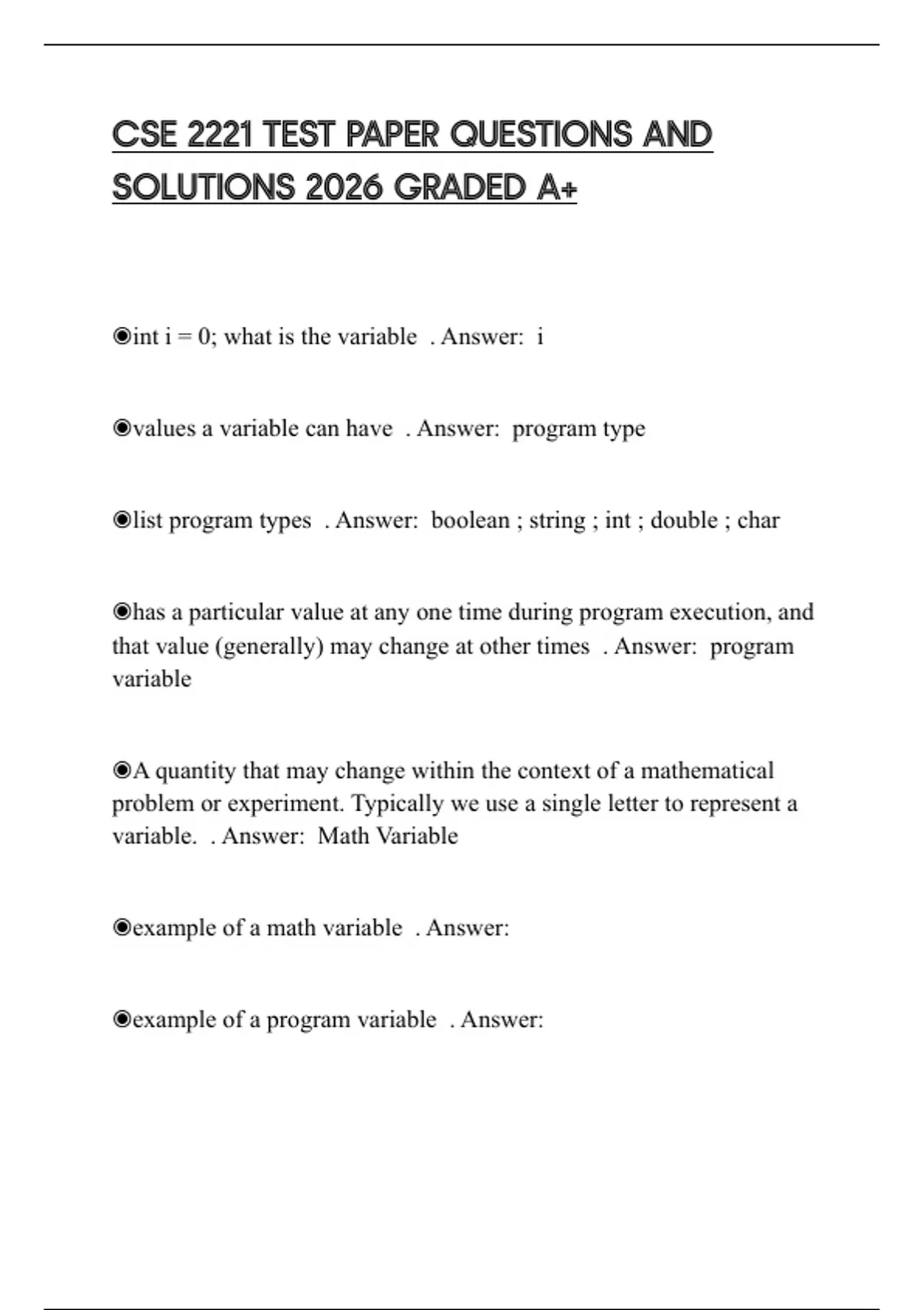 CSE 2221 TEST PAPER QUESTIONS AND SOLUTIONS 2026 GRADED A+