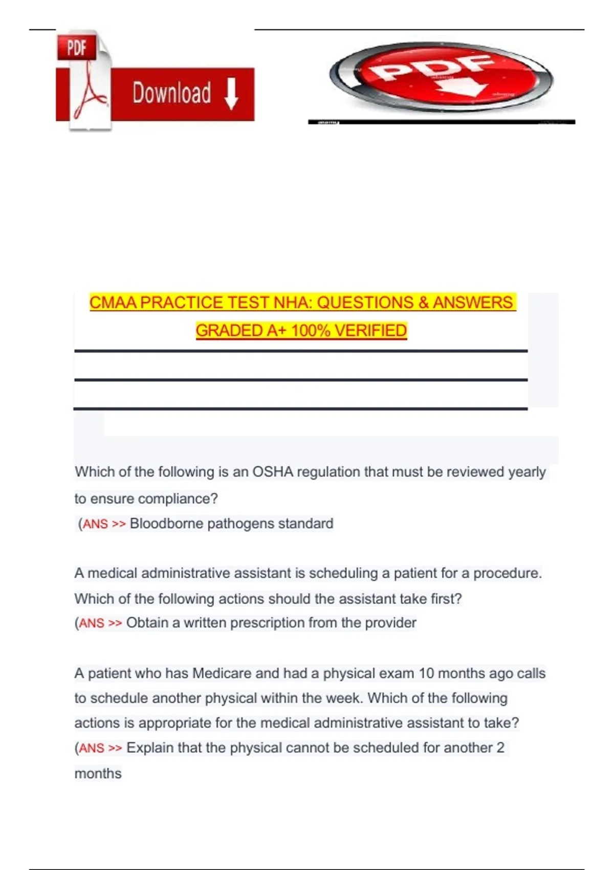 CMAA PRACTICE TEST NHA: QUESTIONS & ANSWERS