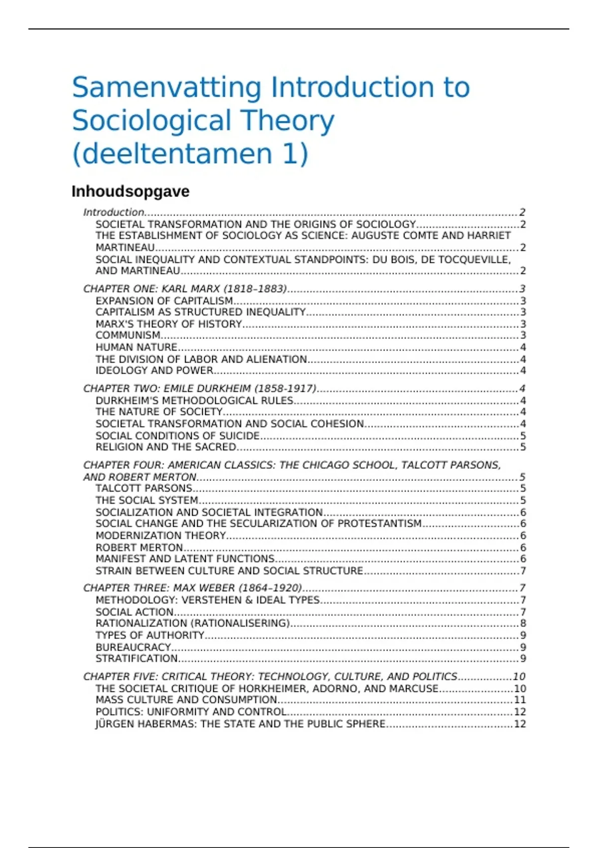 Samenvatting Introduction to Sociological Theory (4e editie) deeltentamen 1