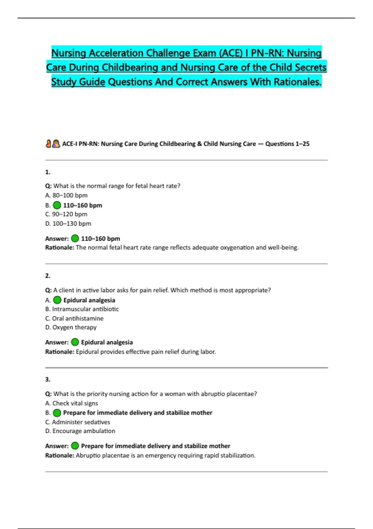 ACE-I PN-RN: Nursing Care During Childbearing & Child Nursing Care — Questions 1–25