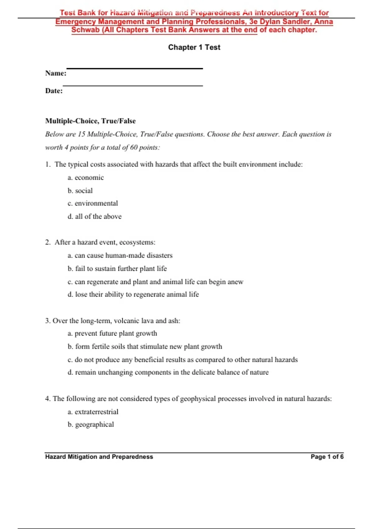 Hazard Mitigation and Preparedness Page 2 of 6