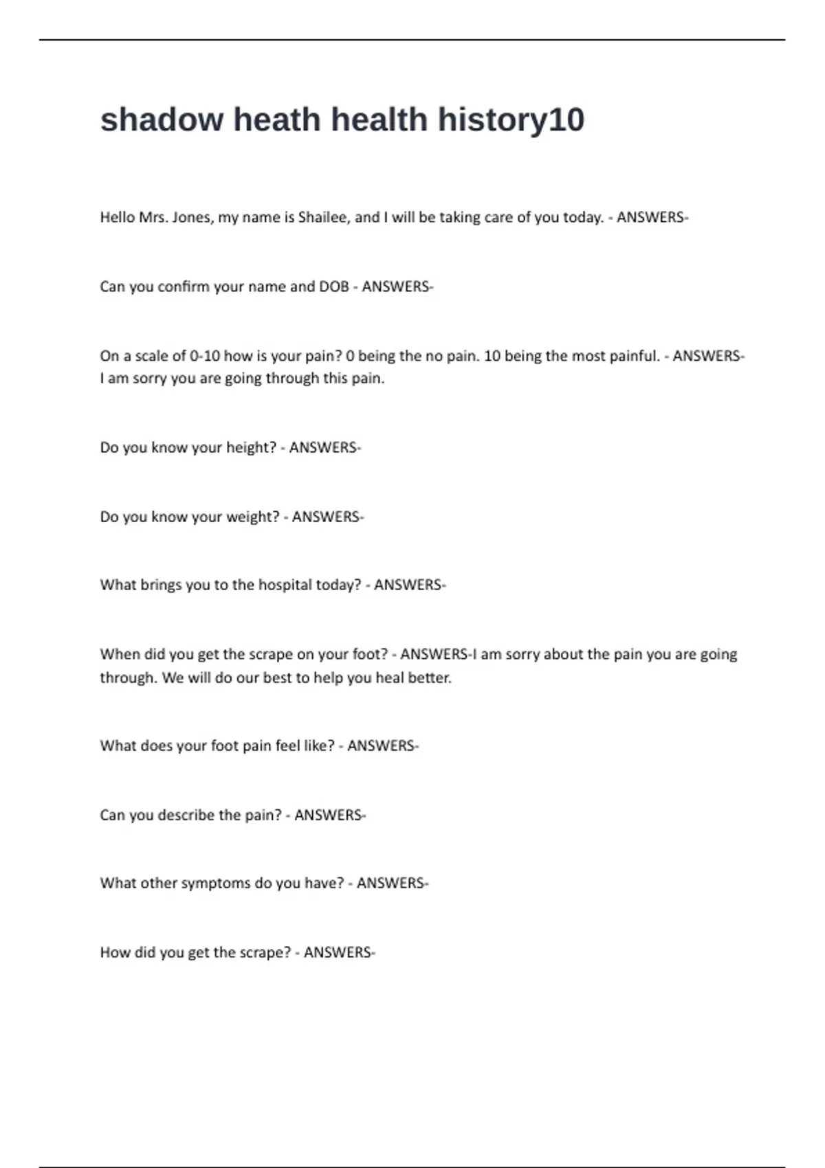 Hello Mrs. Jones, my name is Shailee, and I will be taking care of you today. - ANSWERS-