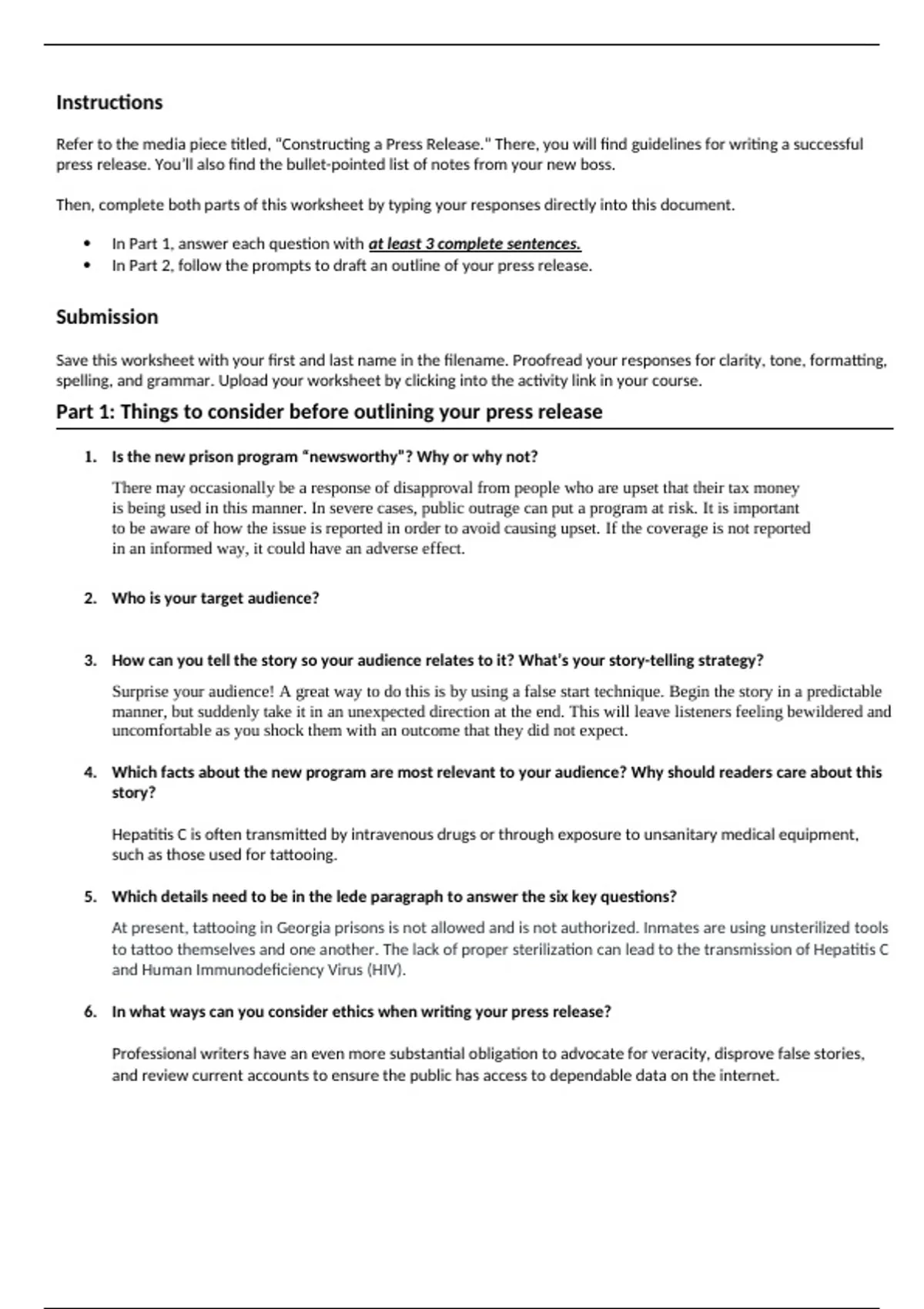 In Part 2, follow the prompts to draft an outline of your press release.