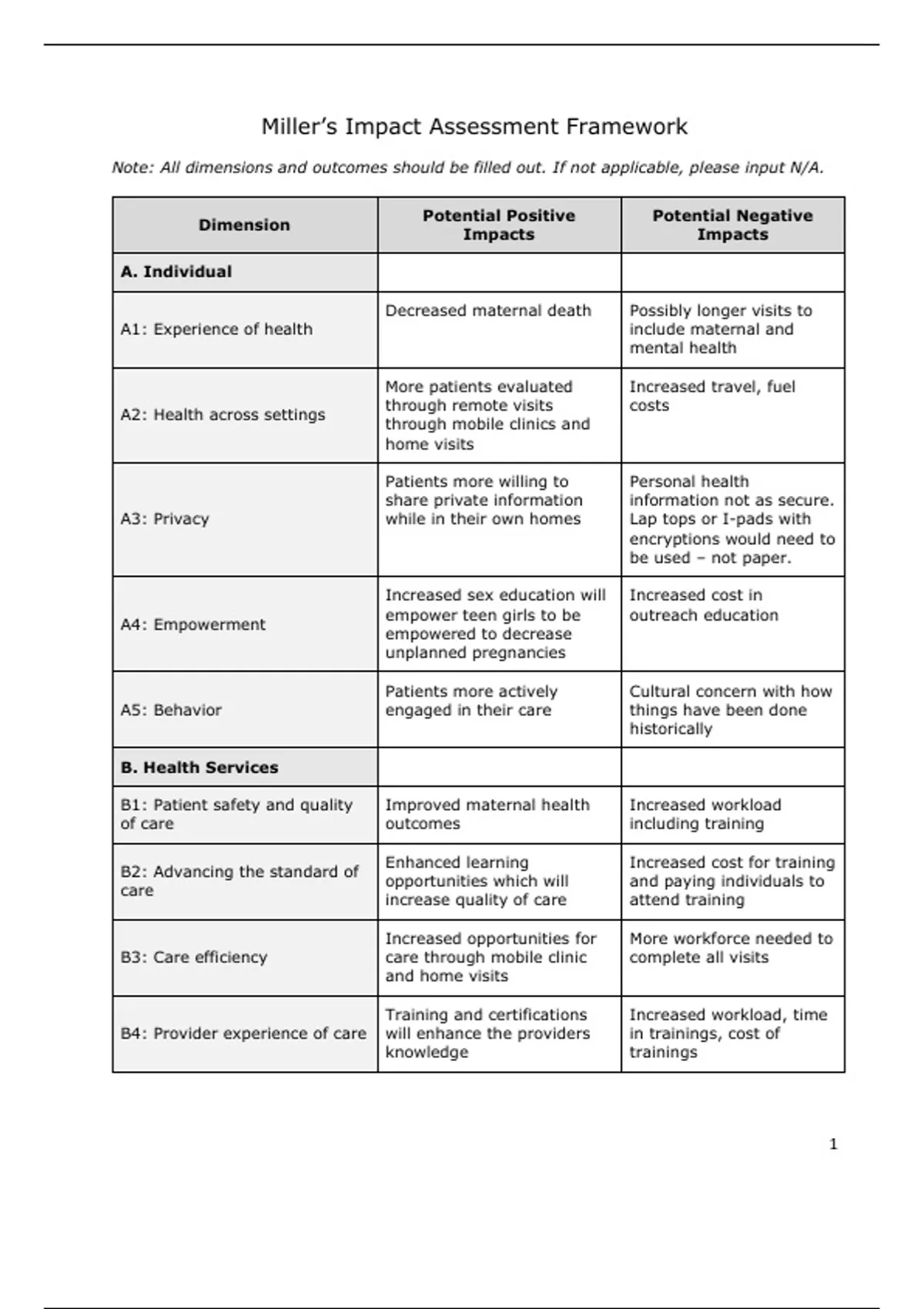 Miller’s Impact Assessment Framework