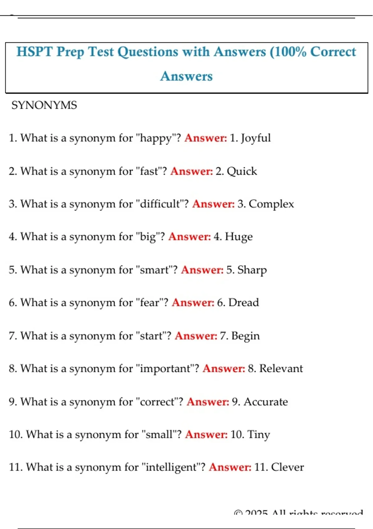 , ##LATEST A+ @Comprehensive Exit Exam ? 20 Different HSPT