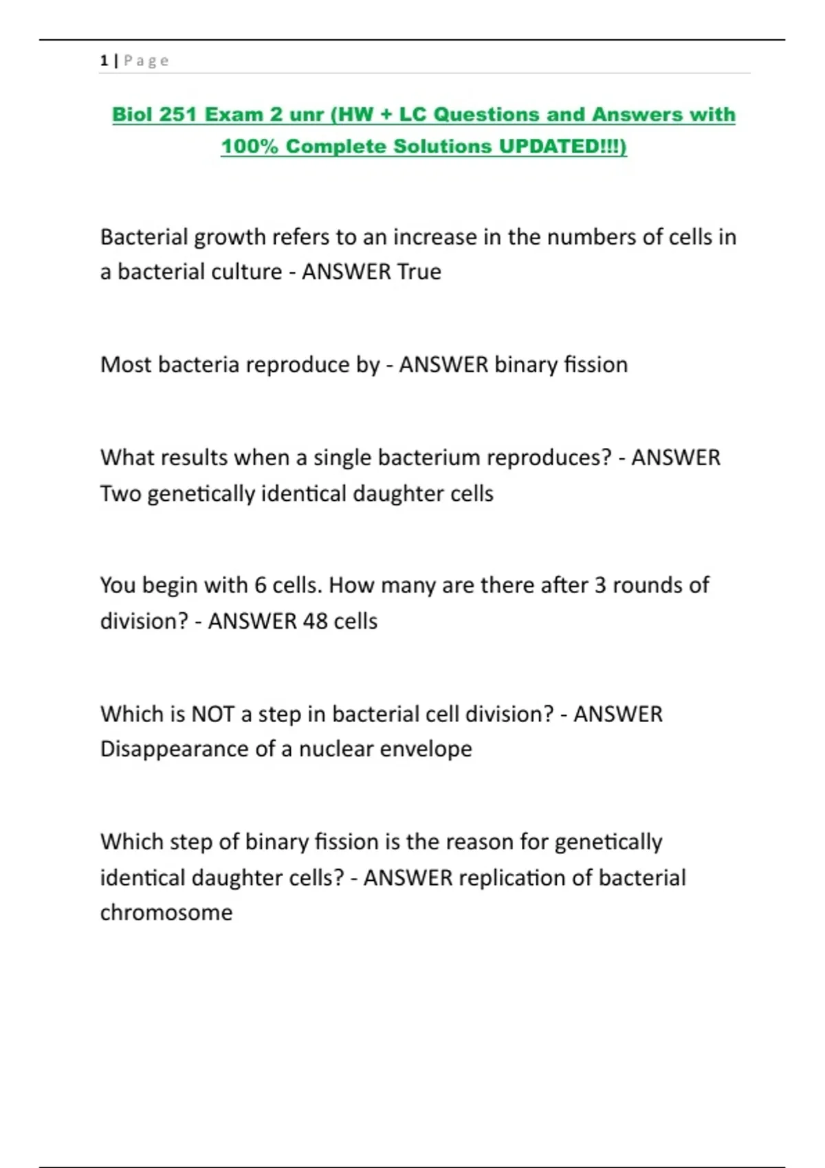 Biol 251 Exam 2 unr (HW + LC Questions and Answers with