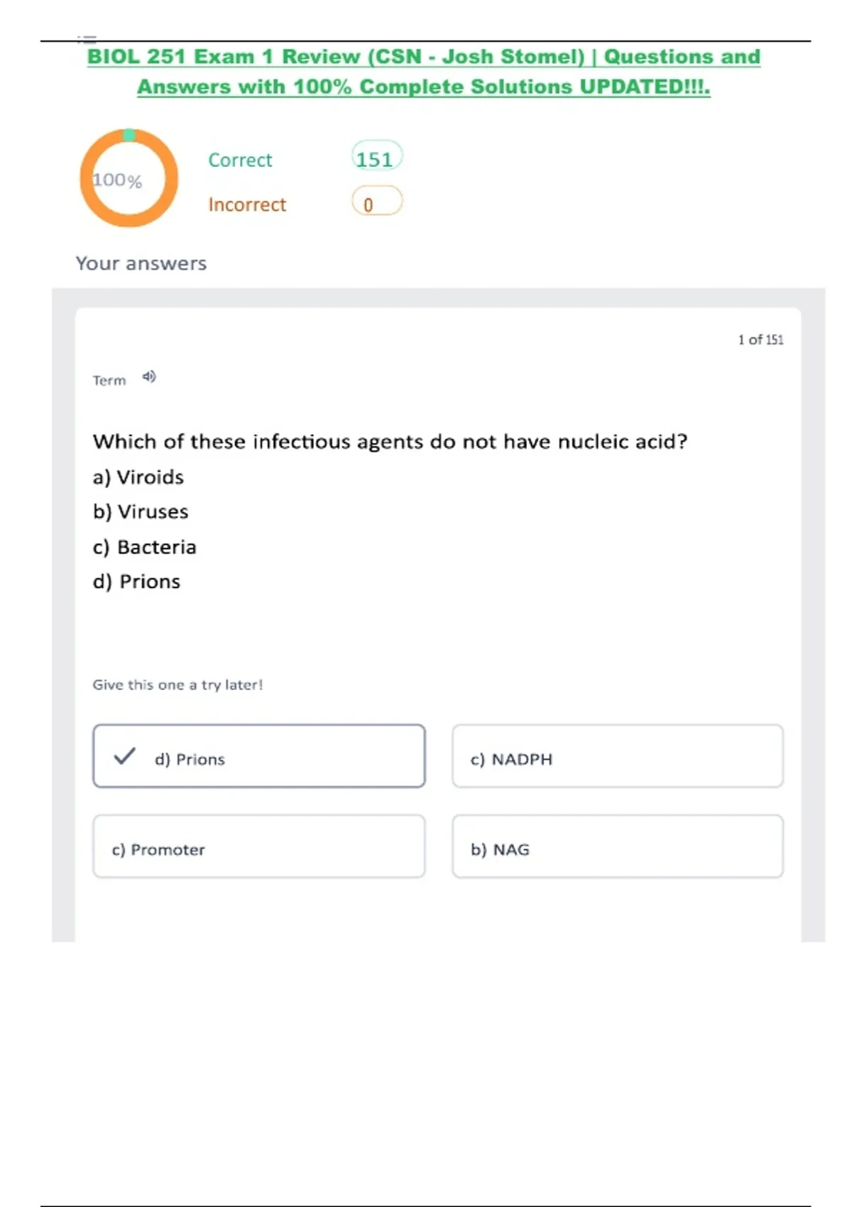 BIOL 251 Exam 1 Review (CSN - Josh Stomel) Questions and Answers with 100% Complete Solutions UPDATED!!!.