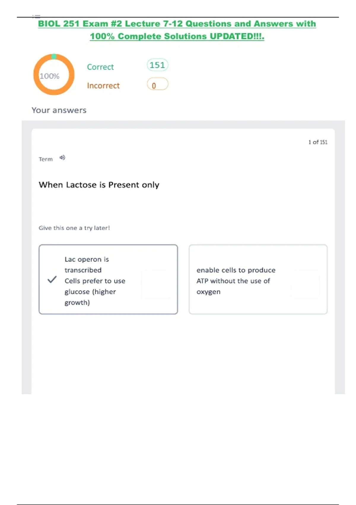BIOL 251 Exam -2 Lecture 7-12 Questions and Answers with 100% Complete Solutions UPDATED!!!..