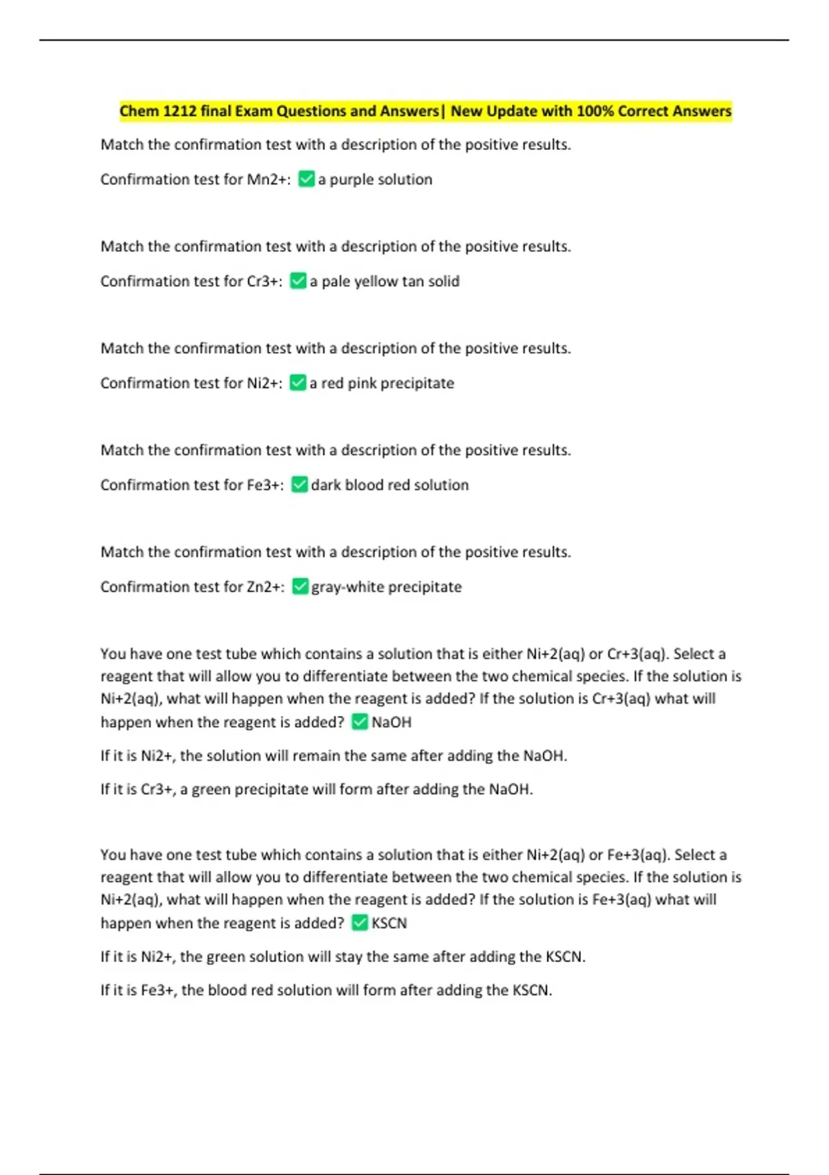 Chem 1212 final Exam Questions and Answers| New Update with 100% Correct Answers