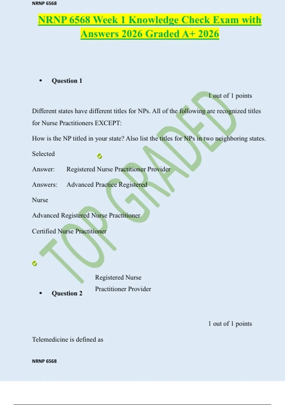 NRNP 6568 Week 1 Knowledge Check Exam with